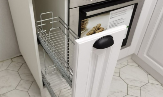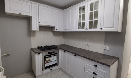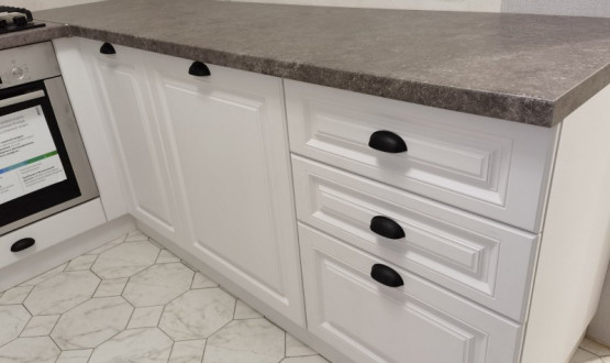 Кухня мдф с фрезой белого цвета, стиль - современная классика, установлена на ул. Луначарского. Доступная цена, под ключ с доставкой, установкой.