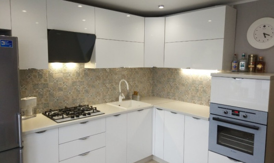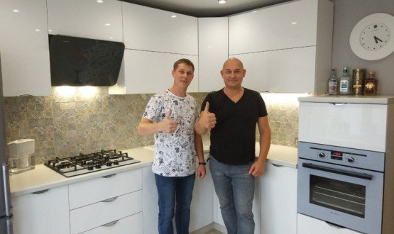 Глянцевая кухня установлена для нашего клиента Алексея в Каменке.