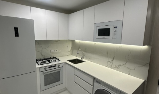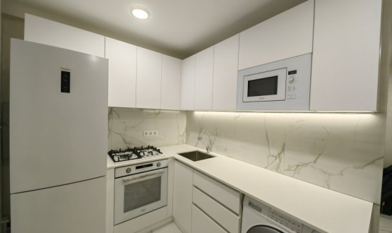 Светлая кухня для нашей клиентки Сони в светлых тонах, отлично расширяет маленькое пространство в постройках времен Хрущева.