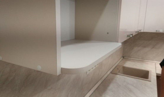 Кухня установлена в Ривьере, на Западной поляне, достойная кухня, все с хорошей фурнитурой, столешницей и фасадами.