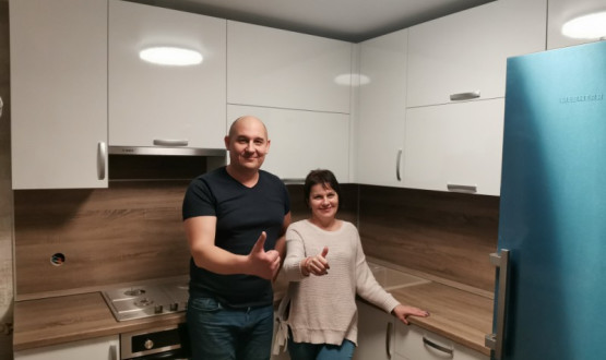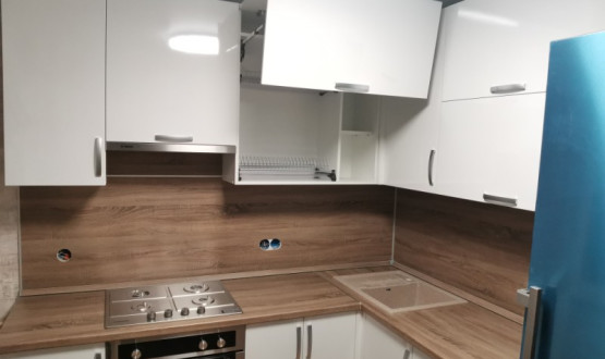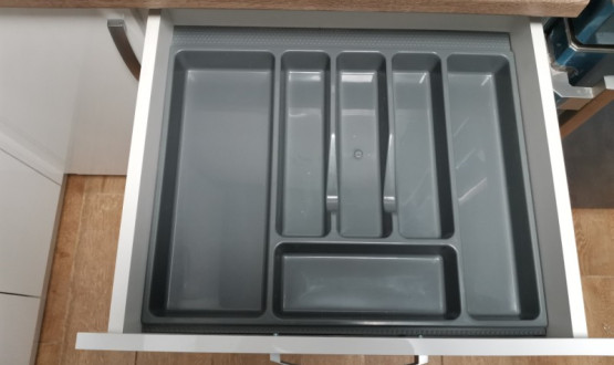 Кухня с глянцевыми фасадами, изготовили для нашей клиентки, что бы она пекла вкусные пирожки. Качественная фурнитура, сушка, фасады. Лоток как обычно встроили в полный размер выдвижного ящика.