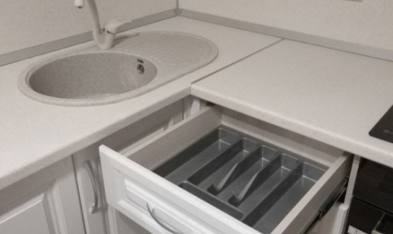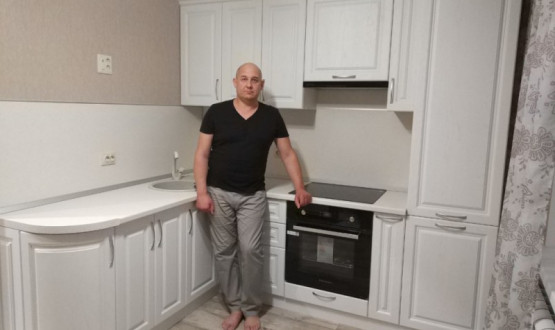 Кухня с гнутым фасадом установлена для нашего постоянного клиента, клиент любит, что бы все было скруглено, у него патологическая боязнь прямых окончаний)