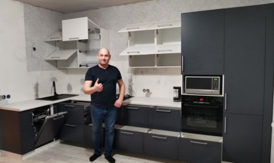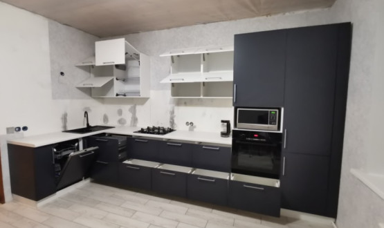 Кухонный гарнитур разработан с элементами закрытия газового котла нашим дизайнером, изготовлен по индивидуальным размерам на нашем производстве, доставлен и установлен в городе Спасск, Пензенской области.