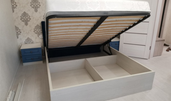 С матрацем, ортапедом, подьемным механизмом и монтажом.