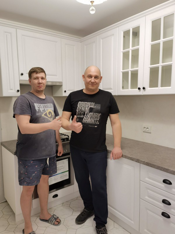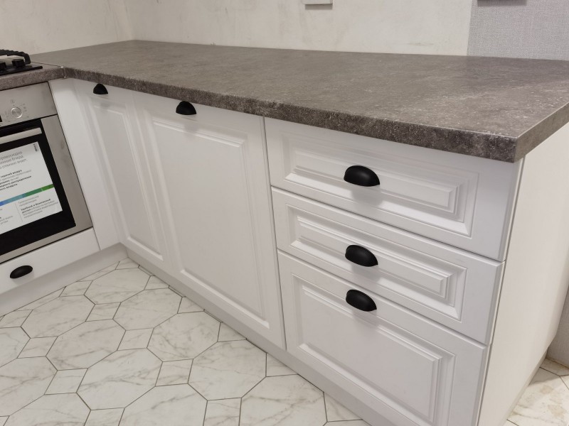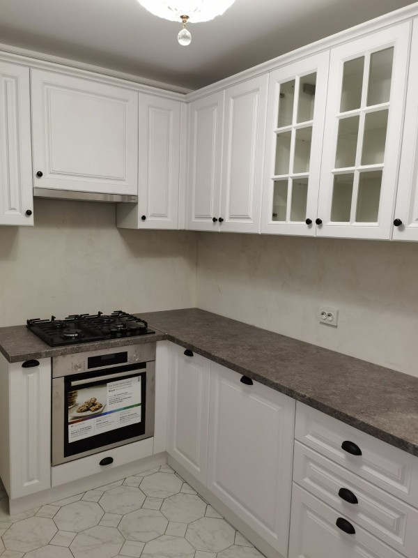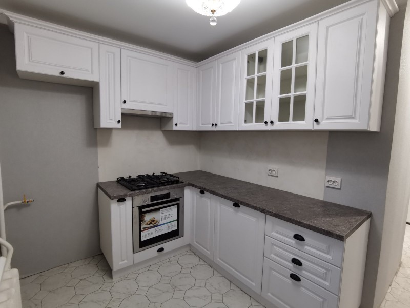 Кухня мдф с фрезой белого цвета, стиль - современная классика, установлена на ул. Луначарского. Доступная цена, под ключ с доставкой, установкой.