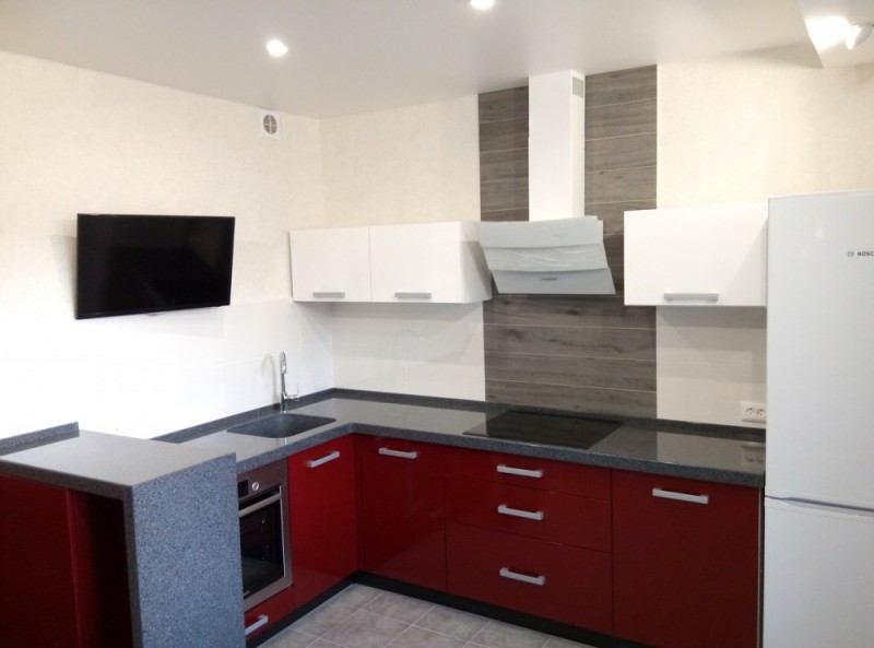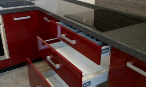 Кухни с каменной столешницей обладают презентабельным внешним видом, более влагостойкие и при правильной эксплуатации служат очень долго. Из минусов можно отметить то, что такая столешница может поцарапаться - эта проблема решается шлифованием.