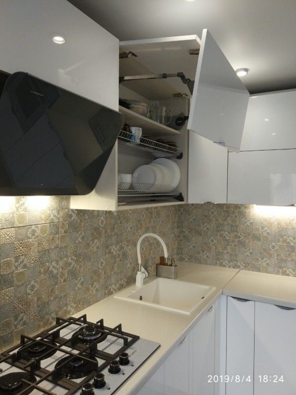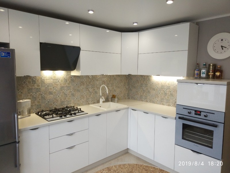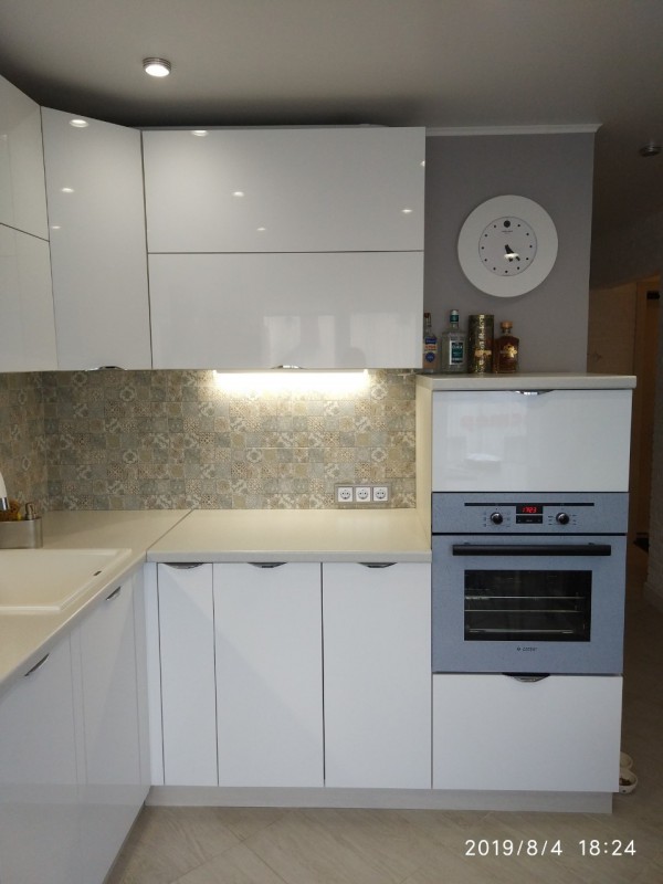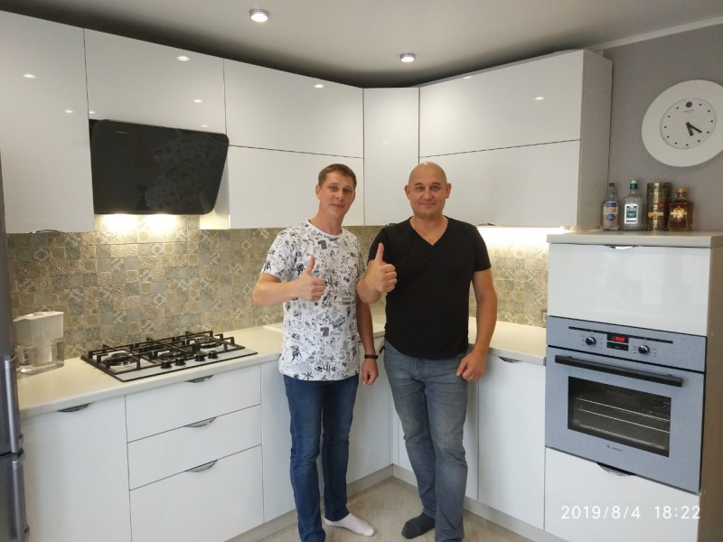 Глянцевая кухня установлена для нашего клиента Алексея в Каменке.