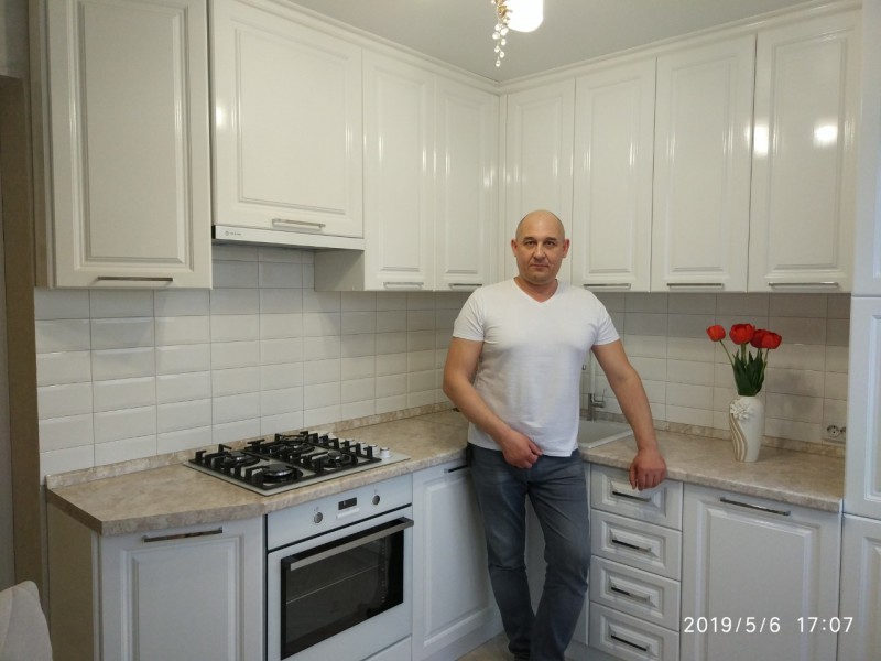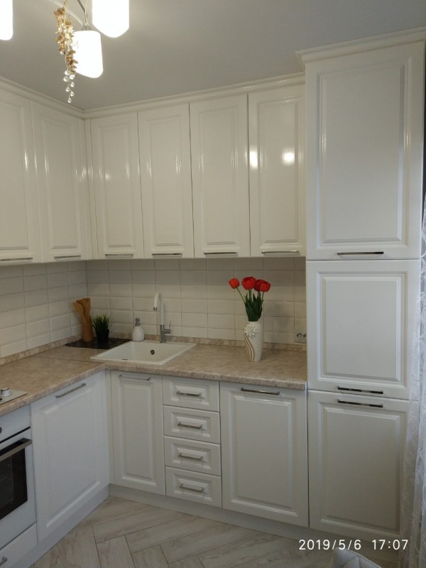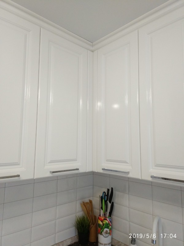 Кухня с фрезой и белым глянцевым фасадом, необычное сочетание стилей, реализована в Пензе по ул. Кижеватова.