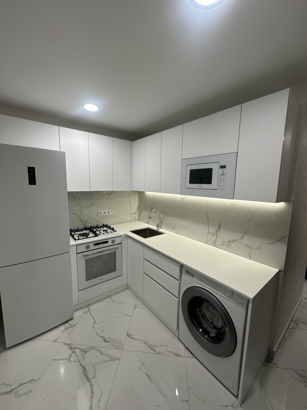 Светлая кухня для нашей клиентки Сони в светлых тонах, отлично расширяет маленькое пространство в постройках времен Хрущева.