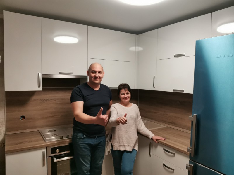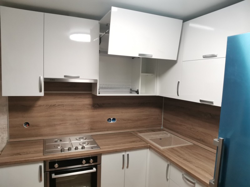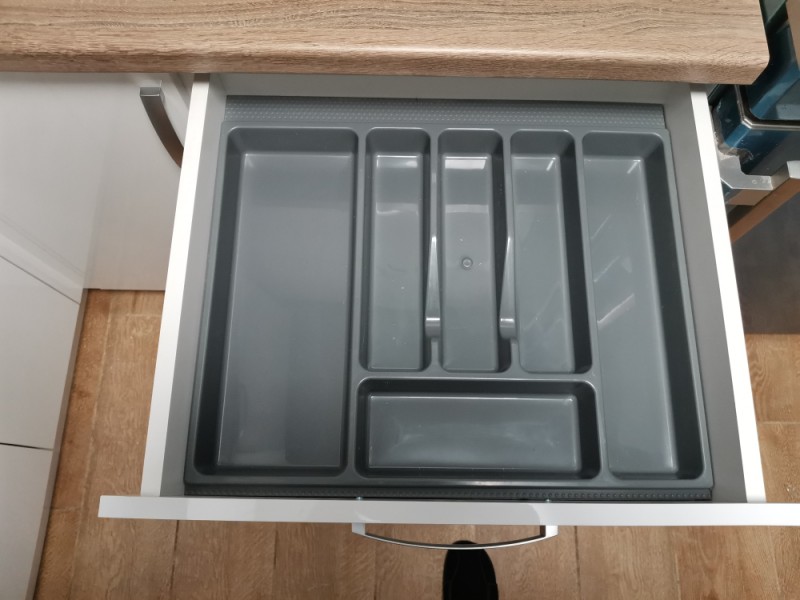 Кухня с глянцевыми фасадами, изготовили для нашей клиентки, что бы она пекла вкусные пирожки. Качественная фурнитура, сушка, фасады. Лоток как обычно встроили в полный размер выдвижного ящика.