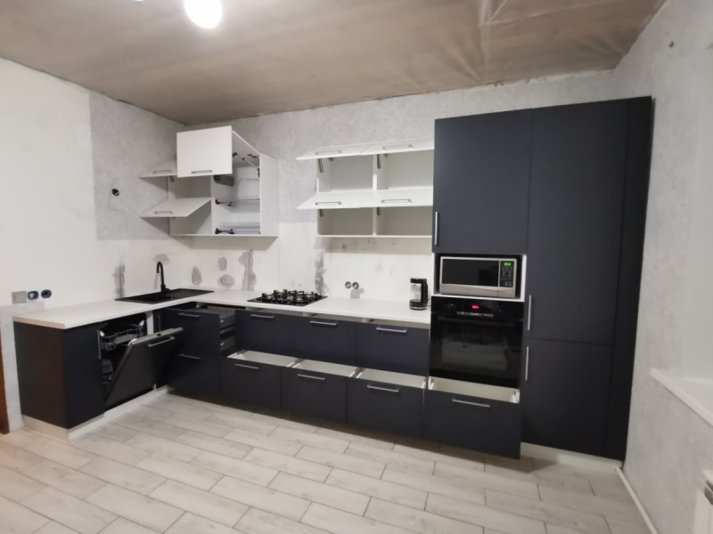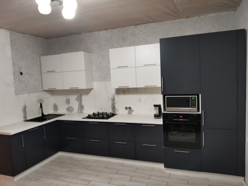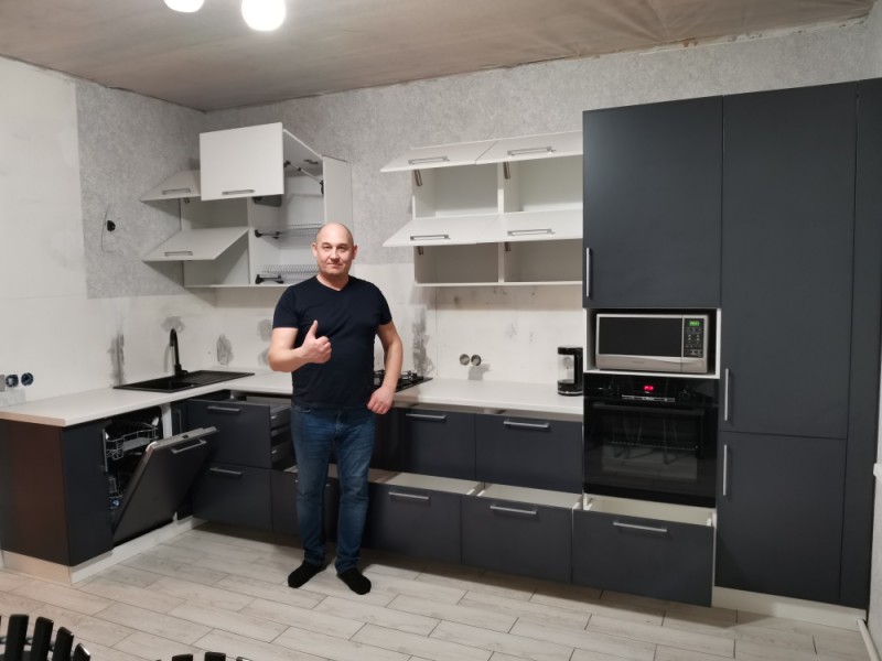Кухонный гарнитур разработан с элементами закрытия газового котла нашим дизайнером, изготовлен по индивидуальным размерам на нашем производстве, доставлен и установлен в городе Спасск, Пензенской области.
